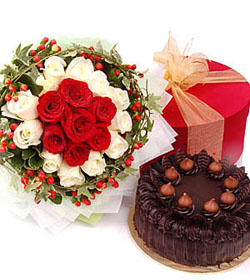 A special giftChocolate cake, cookies and 6 red & 12 white roses bunch.a perfect special gift for a very special person to you. |