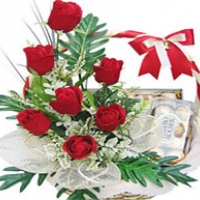 Listen to your heartIf you want to steal someone's heart, give a classic favorite-- ferrero chocolate (200 g & 24 pieces)and 6 pieces rose basket |