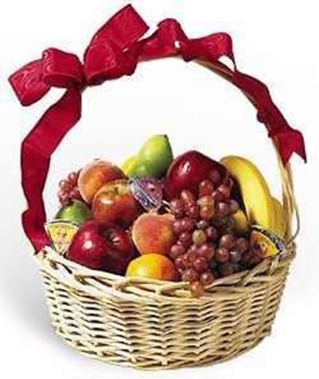 6 items fruits basketFilled to the brim with domestic and exotic fruits, our large, natural woven basket contains an assortment of the freshest seasonal and regional fruits. Fruit choices may include mangos, pears, apples,, bananas, oranges, and pineapple. Festively decorated with a bright bow and wrapped in colored cellophane, our basket is a great treat for anyone on your list. Exact basket and fruit selection may vary by season and delivery location.(6 items).N0TE: FRUITS ITEMS MAY VARY ..DEPEND ON TH AVAILABILITY |