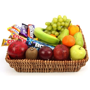Crunchy Bar Fruit Basket | ChocolateCrunchy Bar Fruit Basket | Chocolate Fruits: Kiwis Plums Gala apples Green Apples Orange Pear Grapes Bananas 7 items fruits & 8 items chocolates |