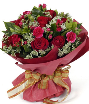 Distant Greetings12 red roses, with red carnations |