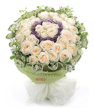 Stars Unlimited bouquet33 champagne roses, decorative euphorbia marginata and grass crystal jewelry. |