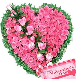 10 peach & 90 pink roses heart basket
