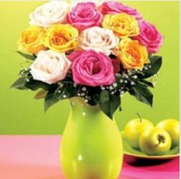 12 cute multicolor roses way to say I love you to your special someone.Your gift will come with a greeting card. red pink orange pomelo yellow