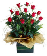 This cheerful arrangement of 18 pieces red roses with gorgeous glass vase will definitely bright somebody's day.