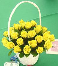 Roses are like the ponies of the rose world; smaller but just as beautiful if not more lovable. Considered "cute" roses, this large arrangement comes with 24 yellow roses. Placed into a large basket and blended with assorted greenery, this combination makes for the perfect gift on anniversaries or as a friendship gift.