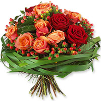 Just as roses will always be beautiful, loved ones will always be cherished. This bouquet of orange and red roses is an inspirational gift that's designed to make them smile!Just as roses will always be beautiful, loved ones will always be cherished. This bouquet of orange and red roses is an inspirational gift that's designed to make them smile!
