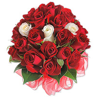 Innovative, luxurious and indulgent, this gorgeous bouquet of sparkling 21 red roses highlighted with 3 white ones, makes an extravagant statement of fashion for that special someone.Innovative, luxurious and indulgent, this gorgeous bouquet of sparkling 21 red roses highlighted with 3 white ones, makes an extravagant statement of fashion for that special someone.