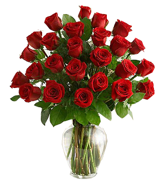 Because your sweetheart deserves to be romanced twice as much, send 24 of the freshest long-stem roses, beautifully arranged by our select floral artists in a classic glass vase with delicate florals and greens.